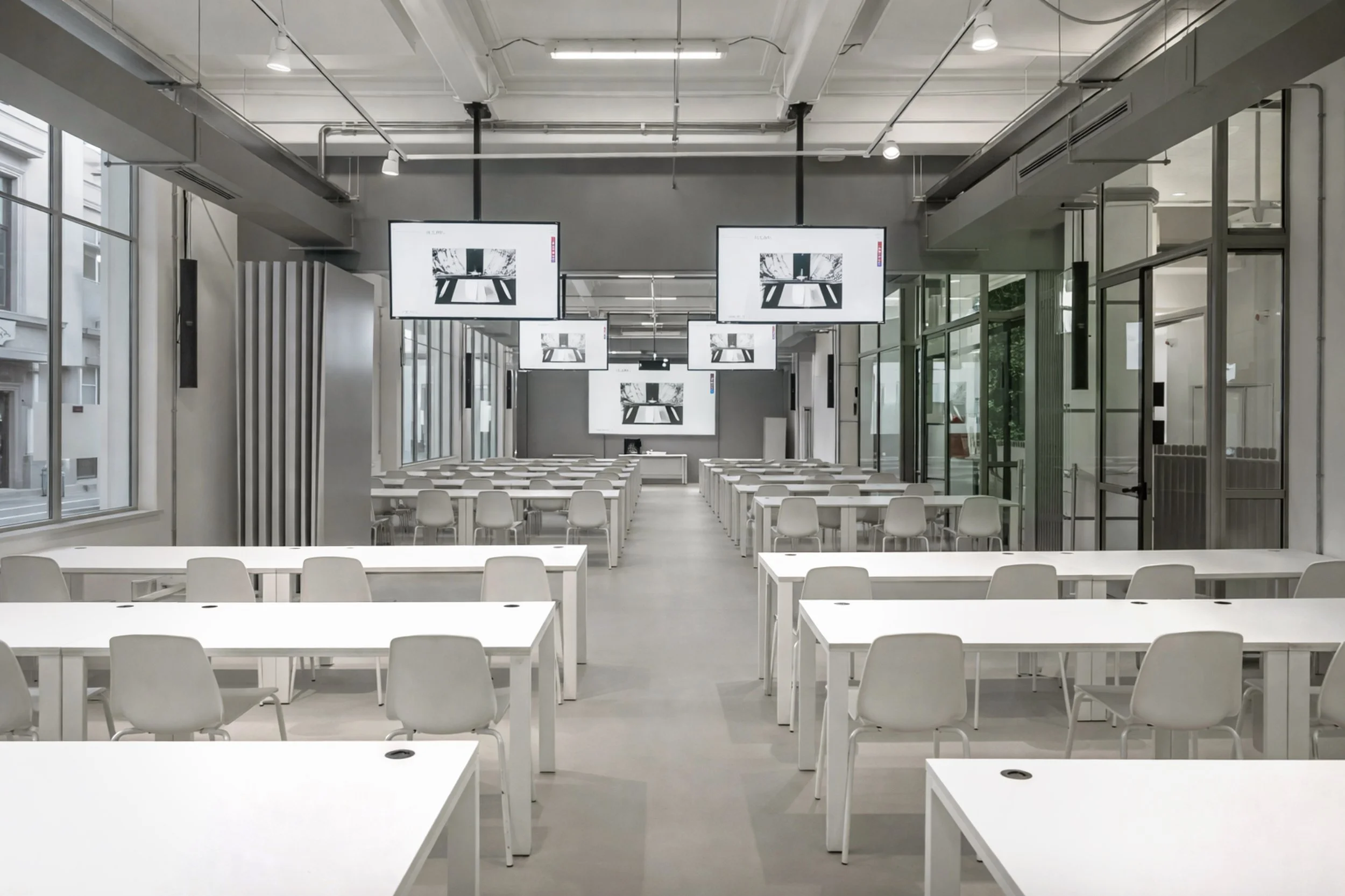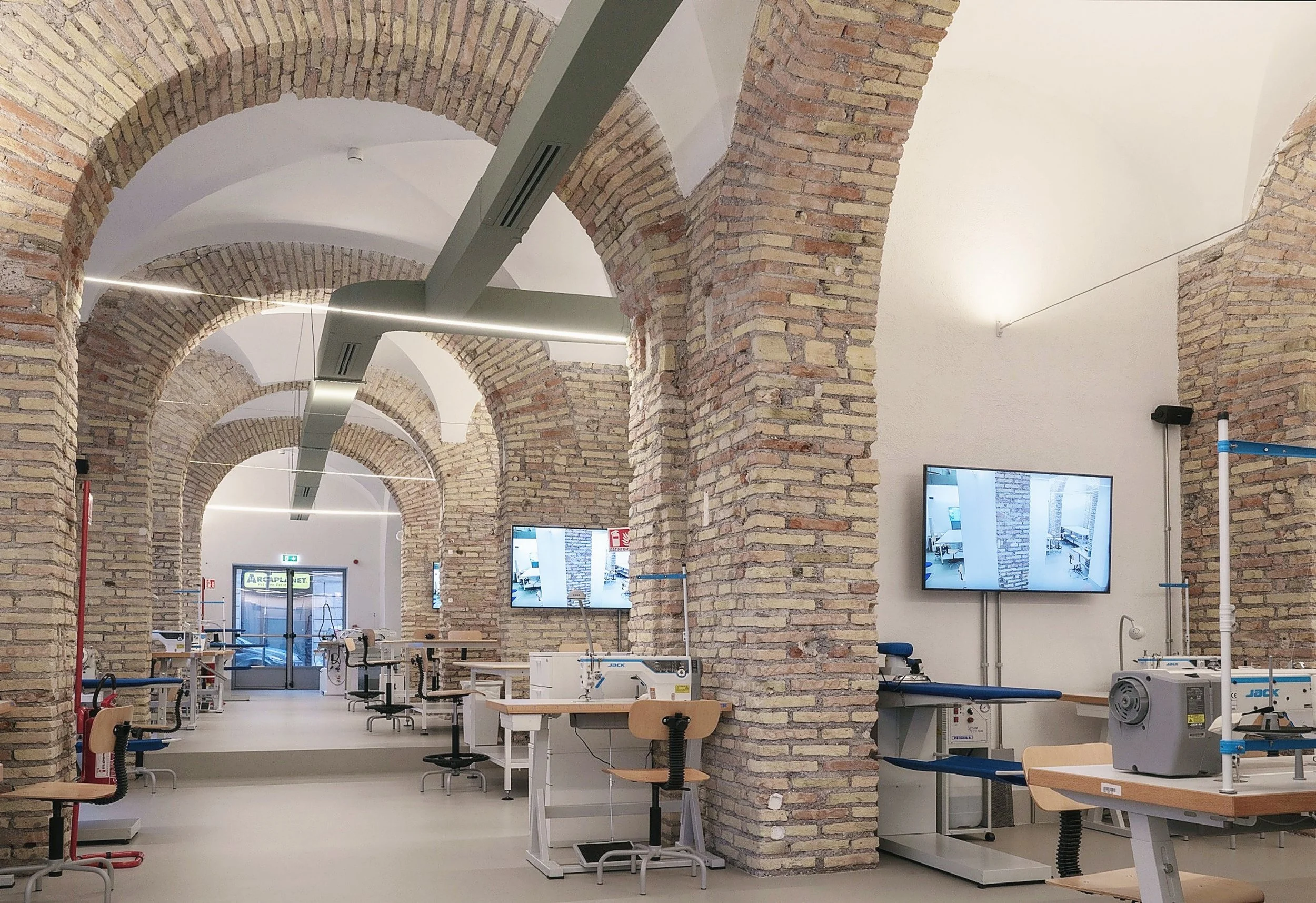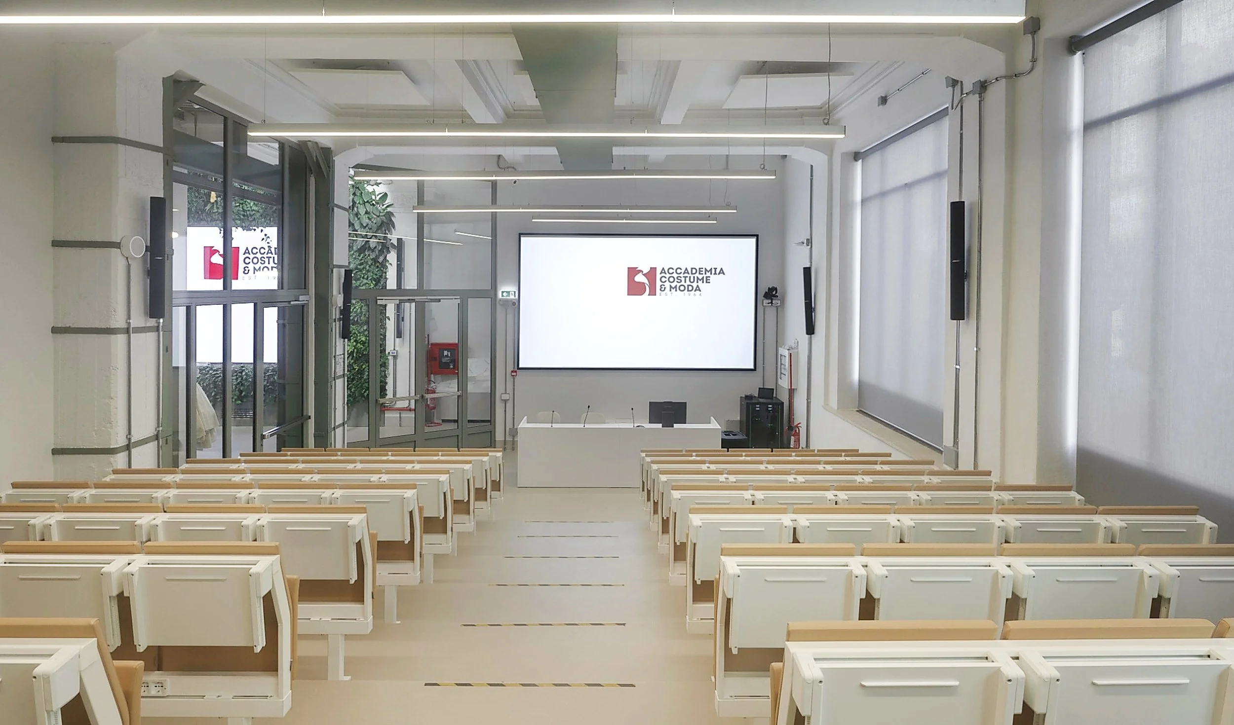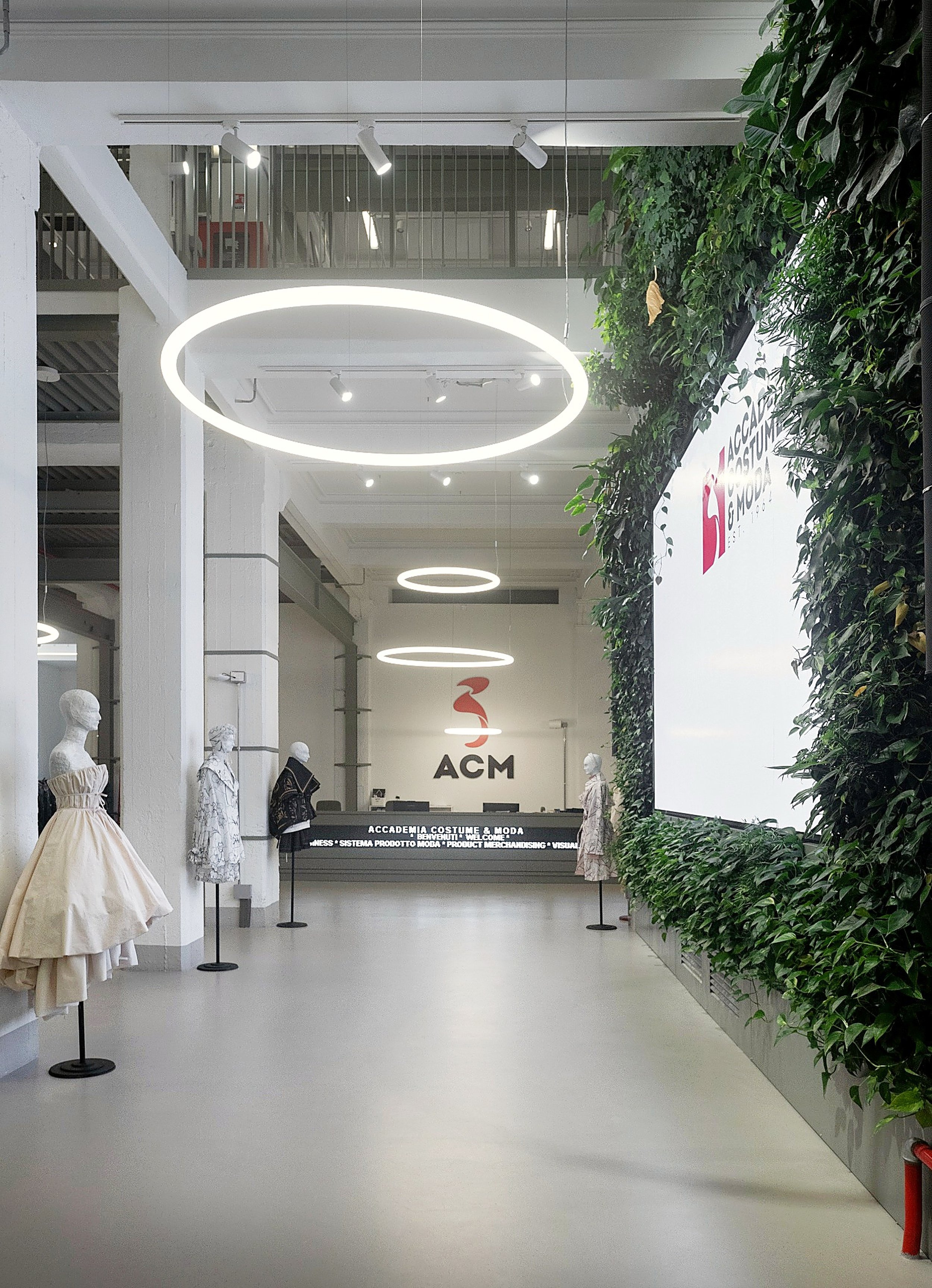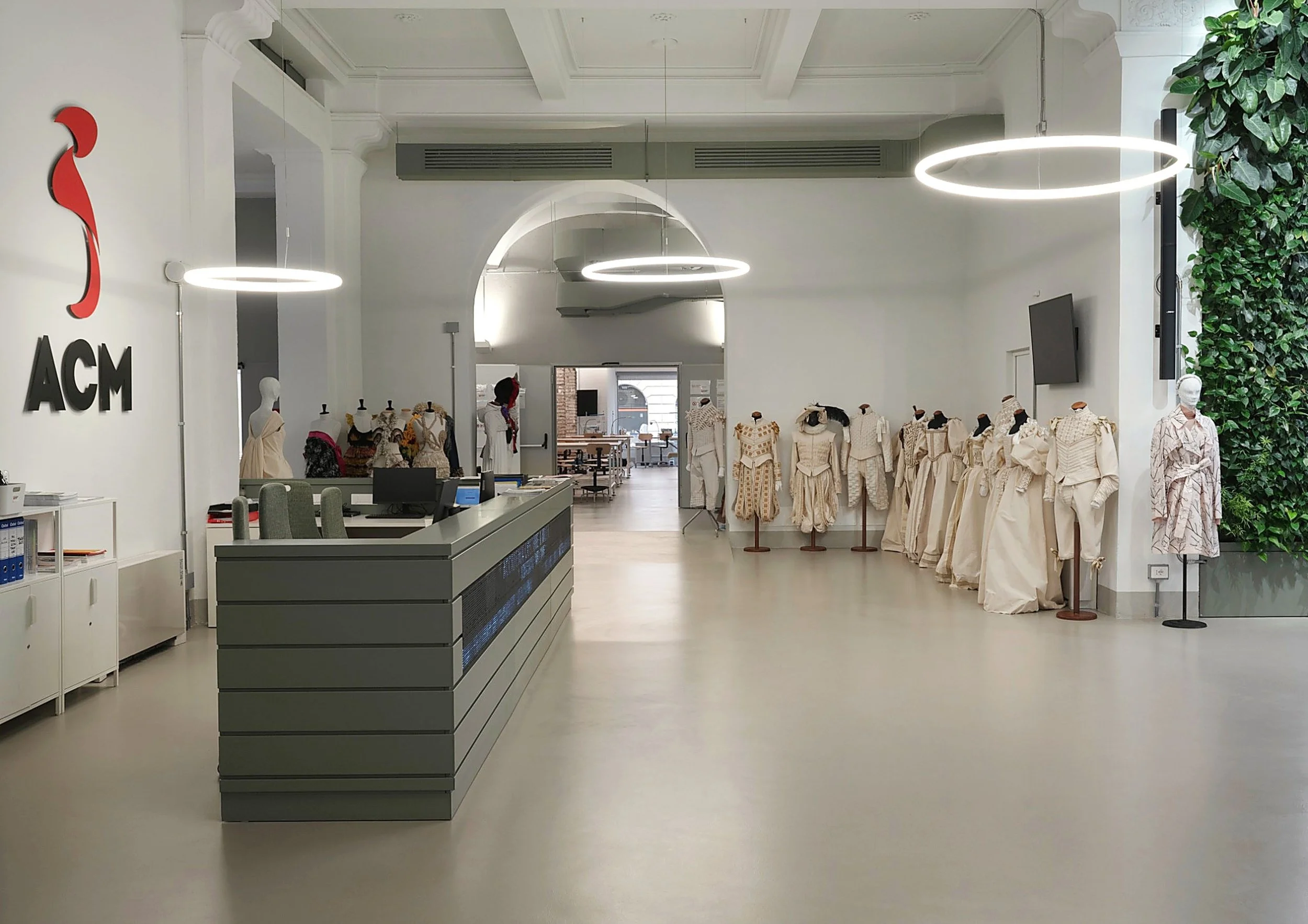Il progetto architettonico, ispirato al DNA di ACM, prevede spazi fluidi, con aule completamente digitalizzate, per mettere al centro la socializzazione degli studenti: così la nuova sede potrà ospitare gli studenti nei suoi 1100 mq di aule interamente informatizzate; 1000 mq di laboratori di Accessori, di Costume, di Alta Moda, di Fotografia e Styling, e nei nuovi spazi dedicati alla biblioteca e alla tessuteca; 250mq di terrazze e il rooftop che potranno essere utilizzate dalla community come spazi ricreativi, di condivisione e di apprendimento. Anche nel design, l’obiettivo della ristrutturazione dell’edificio è quello di valorizzare il passato, cercando di rimanere fedeli ai dettagli della sua costruzione, apportando l’innovazione propria dei nostri anni. La parte Umbertina (piano terra ed interrato) risalente a fine 800, infatti, verrà restaurata mantenendo lo stile originale del periodo di costruzione, prediligendo materiali e design di quell’ epoca storica.